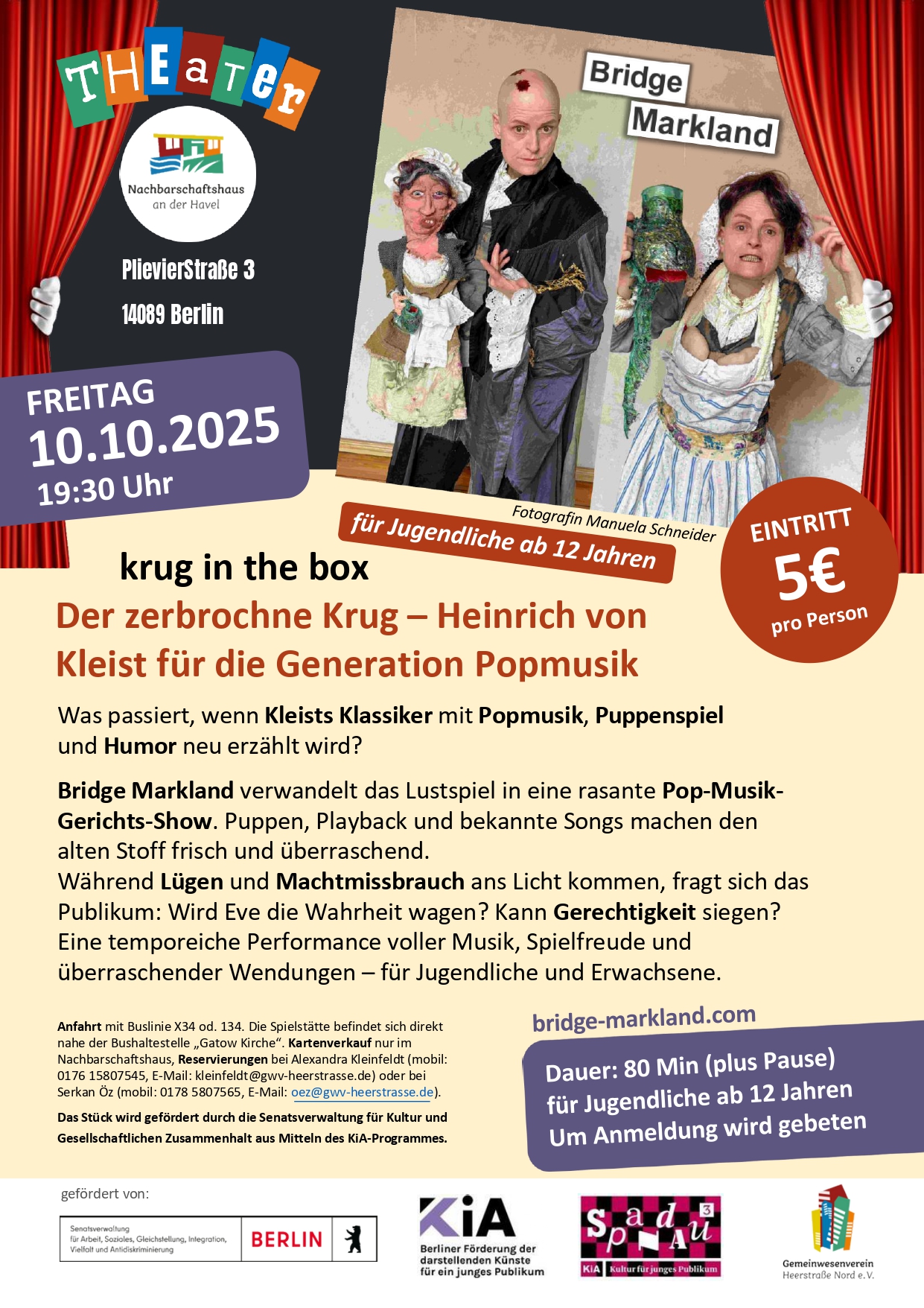 Bitte melden Sie sich für die einzelnen Vorstellungen unbedingt vorab bei Serkan Öz (Oez@gwv-heerstrasse.de) oder Alexandra Kleinfeldt (Kleinfeldt@gwv-heerstrasse.de) an.