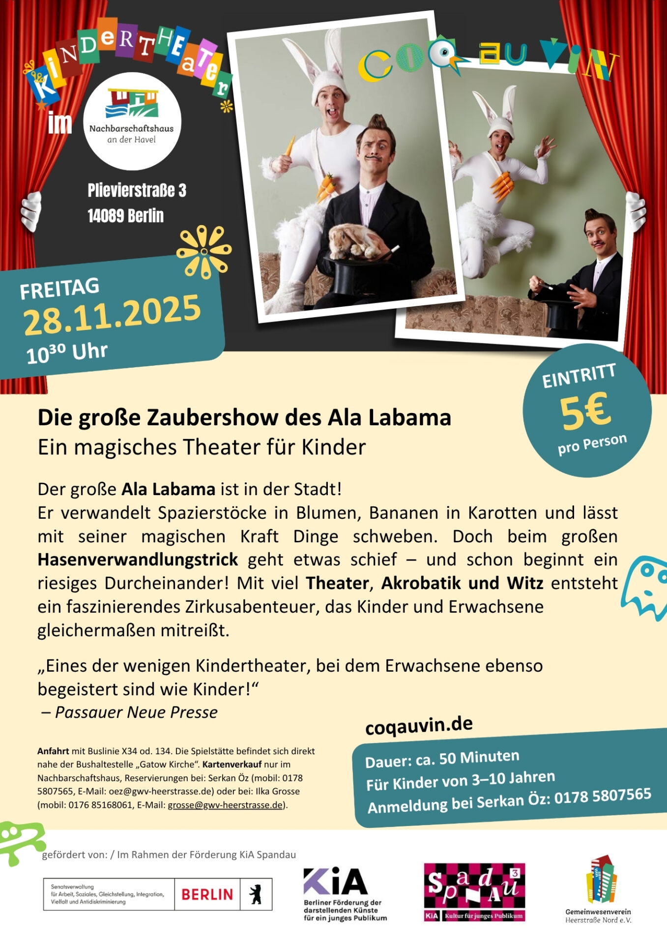 Bitte melden Sie sich für die einzelnen Vorstellungen unbedingt vorab bei Serkan Öz (Oez@gwv-heerstrasse.de) oder Ilka Grosse (grosse@gwv-heerstrasse.de) an.