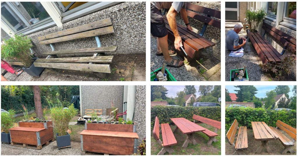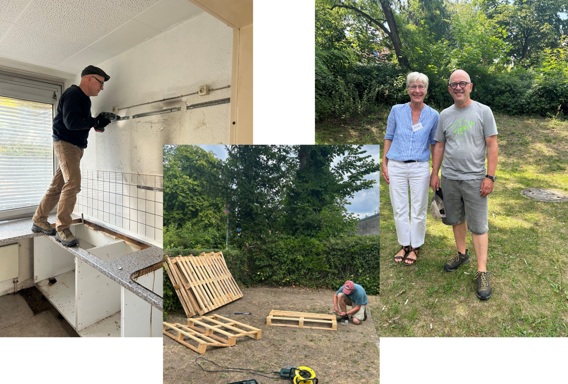 Harald: unser Holz- und Baukünstler: Ob die Holzbänke erneuert werden müssen, Hochbeete nach speziellem Wunsch angefertigt, eine ganze Holzsitzgarnitur erneuert werden muss oder eine Paletten Couch gebaut werden muss….Harald kommt vorbei und fängt an zu bauen und zu werkeln…und am Ende sieht es immer MEGA aus!