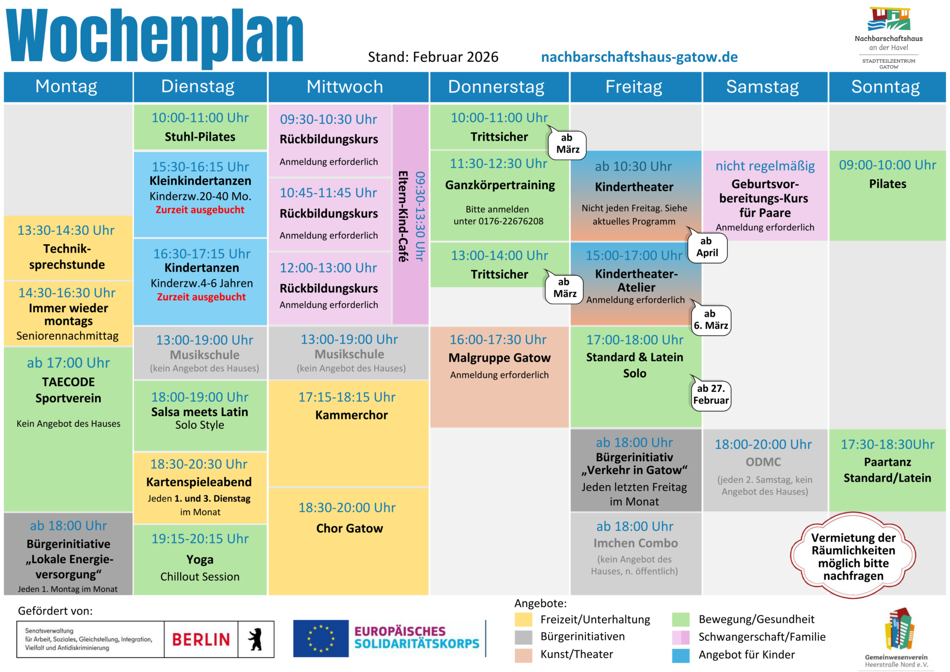 Bitte beachten Sie, dass es immer wieder zu kurzfristigen Änderungen kommen kann.